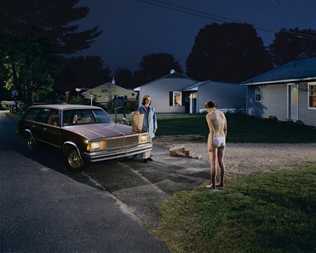 I just wanted to share a couple photographers who interest me. The first one is Gregory Crewdson. He is best known for his elaborately staged photographs.