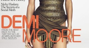 We all know that celebs and those fortunate enough to end up in the cover of a magazine are not as perfect as they look and the images are always touched up in some way. My question is how in the heck did this image of Demi Moore pass by so many sets of eyes and end up on the cover of W magazine? Nobody saw that part of her left hip is not there and yet the fabric is magicallysticking out and holding up. Someone will soon be out of a job…